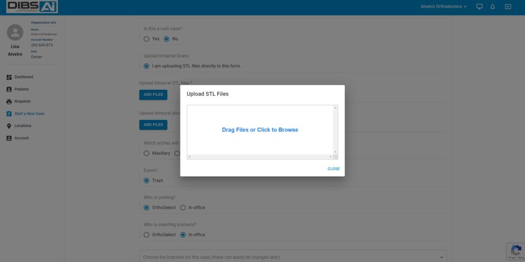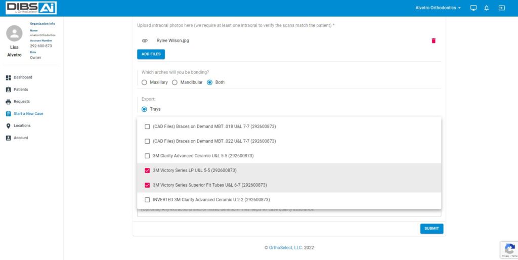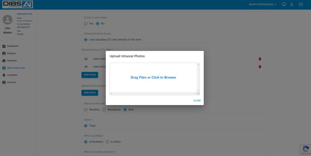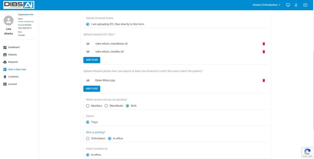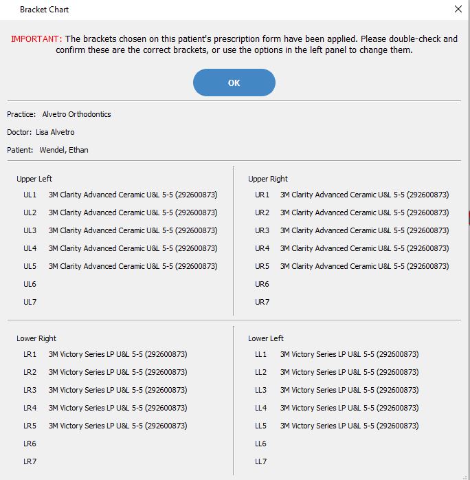 Create a new patient in the manufacturer’s portal. This includes uploading maxillary, mandibular, and bite STL files. Most also require facial and intra oral photos as well as a panoramic film. You will complete a prescription form that describes treatment objectives and bracket placement preferences.