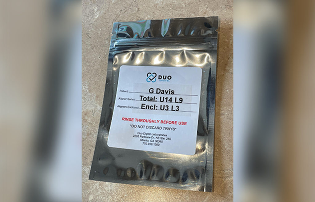 Place the aligner series in box labeled with patient information. This aids in easier transfer from lab to patient and from your office home with patient.