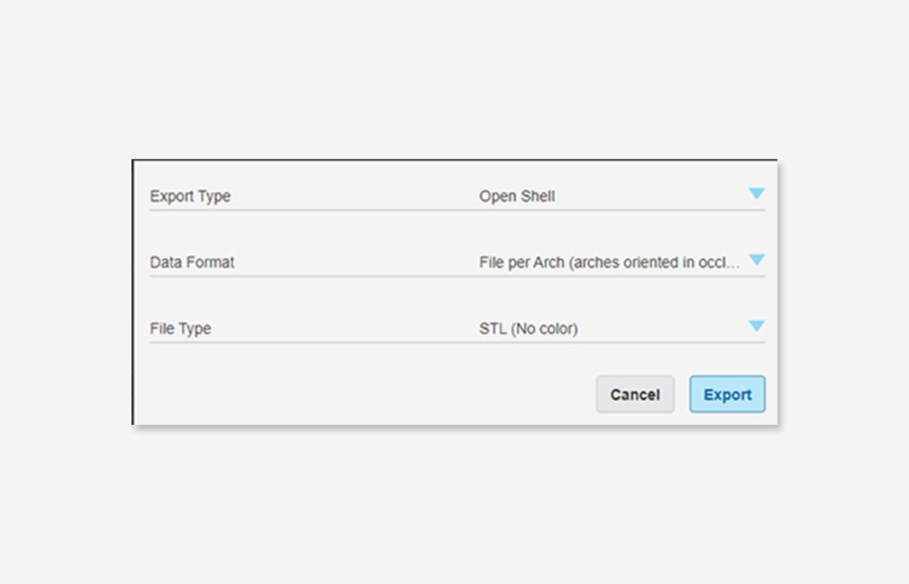 Depending on which intra-oral scanner you use the STL files may be exported from a cloud location or from an acquisition computer to a default or user-defined destination folder. Typically, you will want to export the files as individual arch files oriented in occlusion. This means the maxillary and mandibular arch will each save as a separate file, but the occlusion is maintained if the files are opened together.