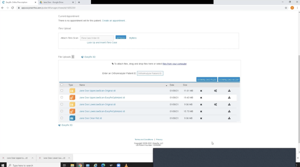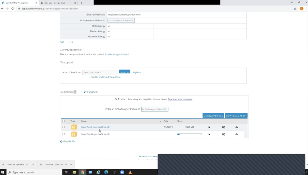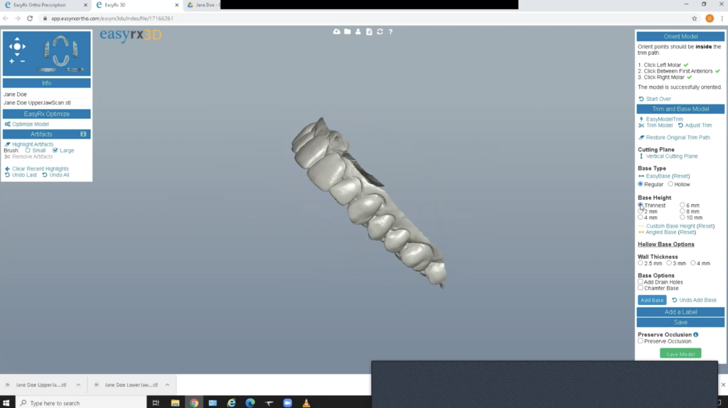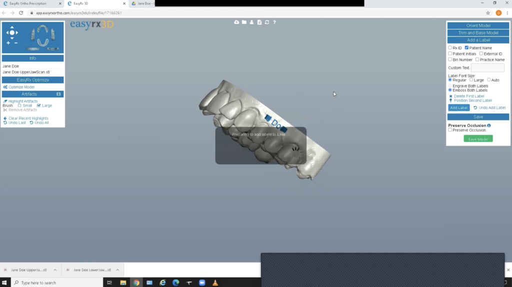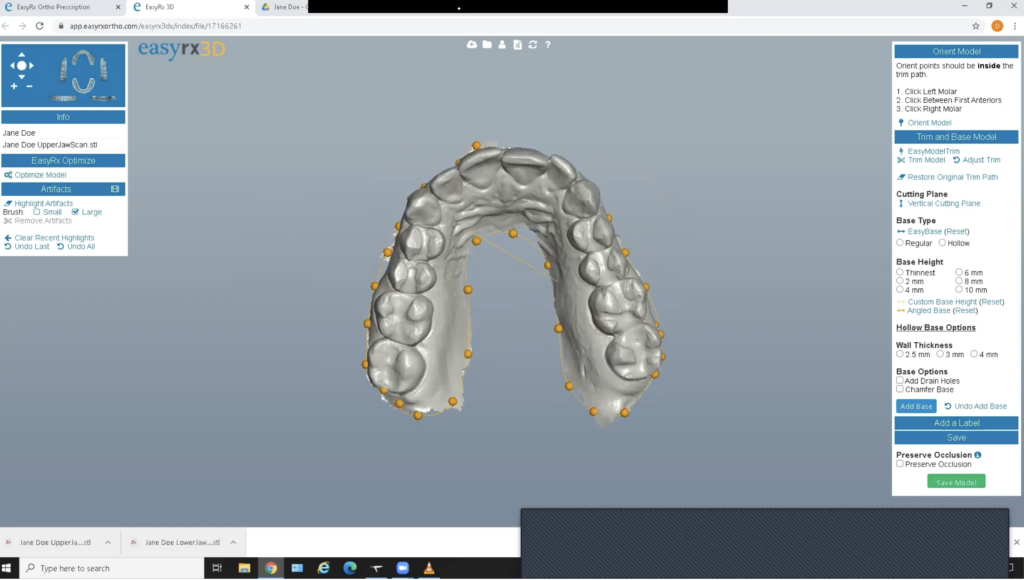 Enter your patient’s information into Easy Rx and upload the STL files for both arches.